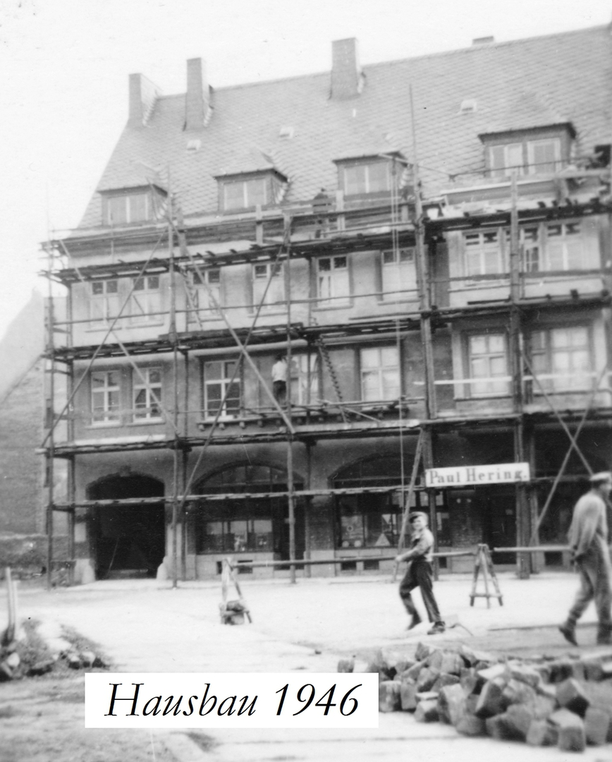 Die verwitwete Mutter Alfred Herings, Meta, geb. Franke, war der Bauherr, Initiator und die treibende Kraft sofort nach dem Zweiten Weltkrieg mit einem Hausneubau zu beginnen. Es fehlte an allem 1945 und 1946, jedoch gelang es mithilfe von Material und einer heute unglaublichen Großzügigkeit und Gutmütigkeit von befreundeten Bauern des Zwickauer Umlandes das Haus zu bauen. 1946 wurde Richtfest gefeiert.